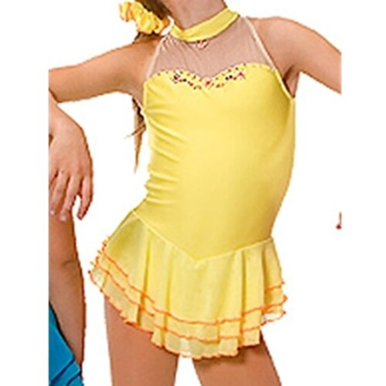 Just perfect for your skating princess. Front sweetheart and back necklines. Low back is supported with nude mesh. Triple layer stretch illusion mesh skirt edged in contrast thread. Absolutely darling!!