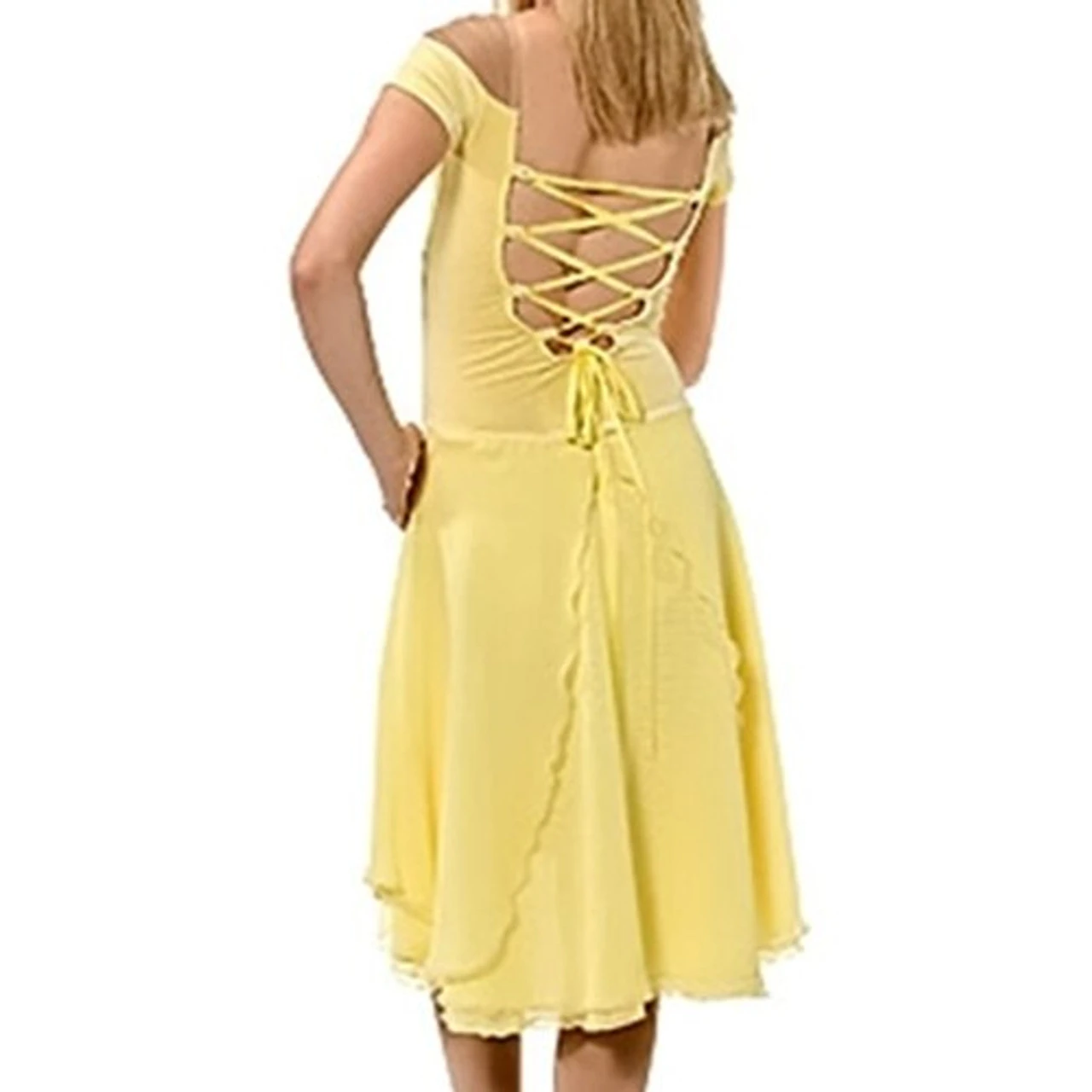 An elegant dress ready for your classical program. Lycra with double chiffon skirt. Low back is laced with satin rattail cording. Also available with matching velvet skirt.