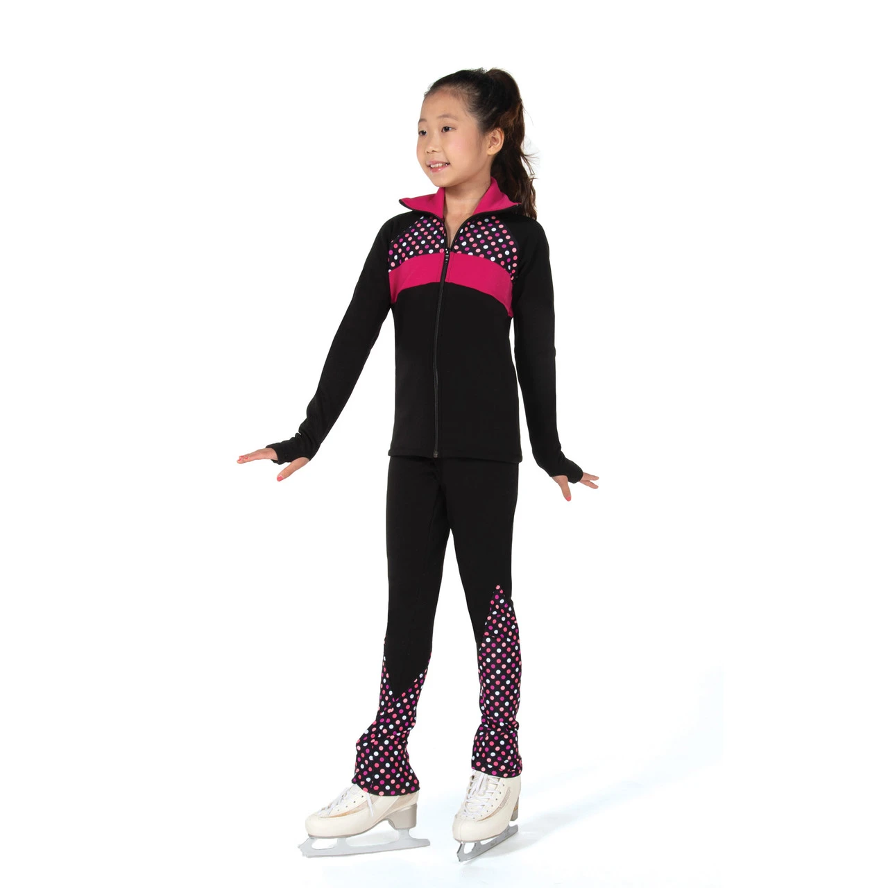 Soft jackets in cozy power fleece feature full front zippers, sleeves with thumb holes, polka dot accents and contrast trim and collars.