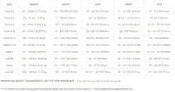 *HEIGHT AND WEIGHT MEASUREMENTS ARE THE MOST IMPORTANT – if you are not sure, rely on these as a guide.